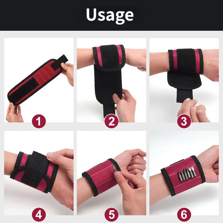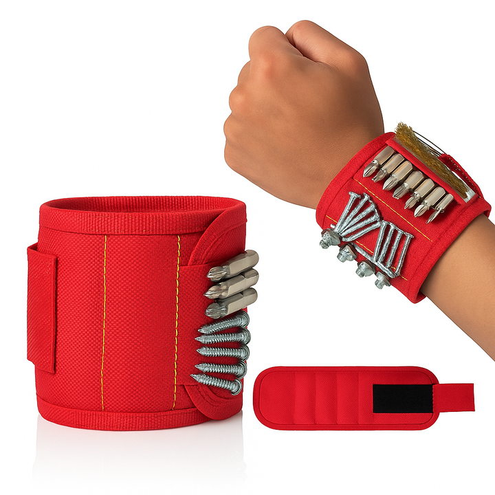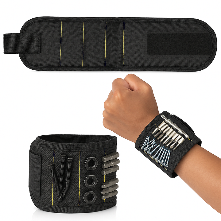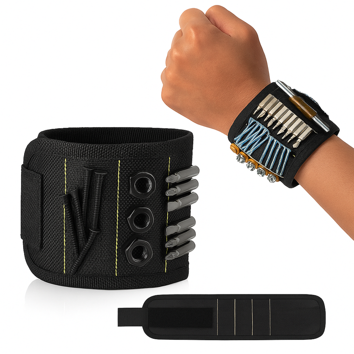 سوار معصم مغناطيسي لحمل البراغي والمسامير ورؤوس المثقاب | حامل أدوات مغناطيسي قوي | أداة عملية للرجال، أدوات يدوية، أعمال النجارة، البناء والإصلاحات