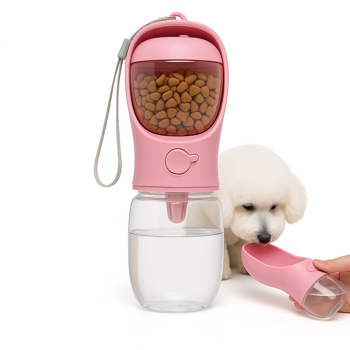 <p>Make outdoor adventures simple with our <b>2-in-1 Portable Dog Water Bottle with Food Container</b> – designed for <b>dogs, cats, and puppies</b> of all sizes. This innovative travel accessory combines a leakproof water dispenser and a dry food compartment, ensuring your pet stays fed and hydrated anywhere you go.</p>