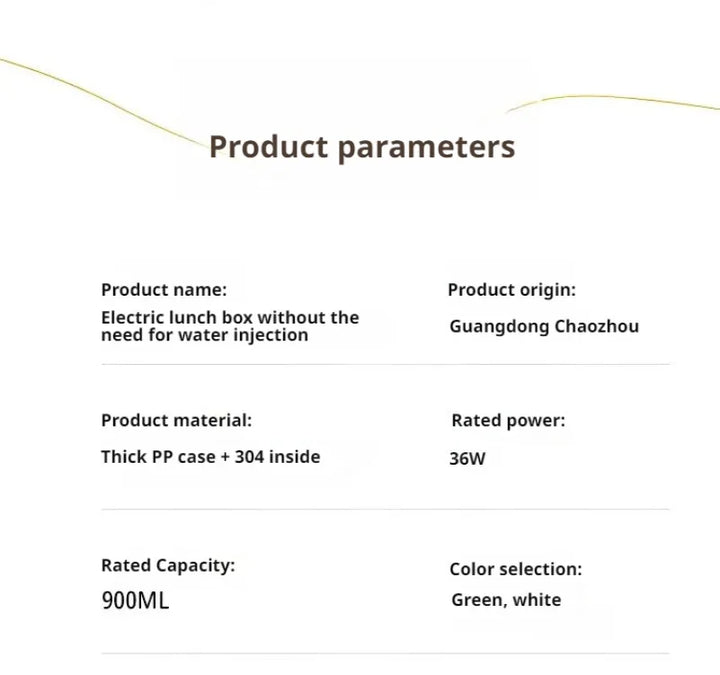 <p>π₯ Featuring <b>water-free heating technology</b>, this electric lunch box warms your food evenly and efficiently, reducing waiting time. The <b>removable stainless steel container</b> is leak-proof, easy to clean, and keeps flavors intact, making it ideal for soups, rice, pasta, and more. Perfect for office desks, long drives, or outdoor trips. π</p>