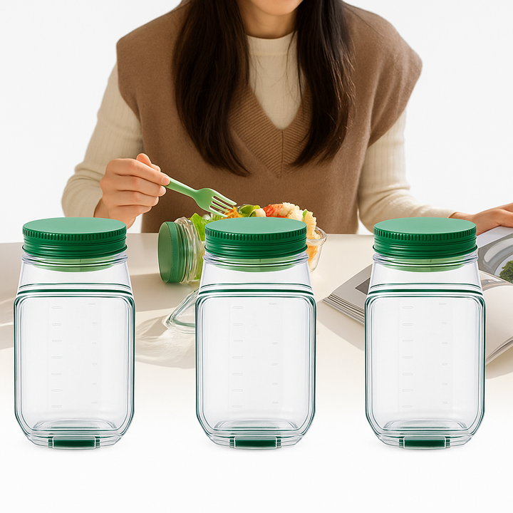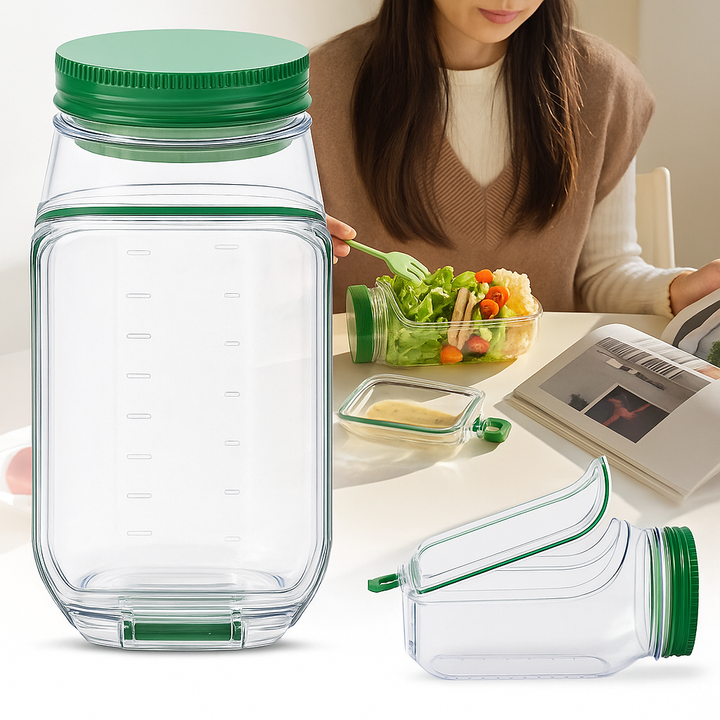 ăSafe, Reusable, and Portable Salad JarăMade from high-quality, food-grade materials, the Salad Jar is a durable, reusable alternative to single-use containers. Perfect for on-the-go meals or everyday kitchen storage, it provides a sustainable solution for your salad jar with dressing bowls and encourages an eco-friendly, health-conscious lifestyle